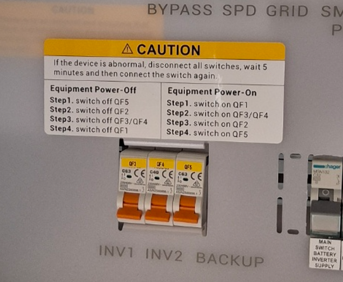 Wait a few minutes until the inverter fully shuts down. Then restart in reverse order.